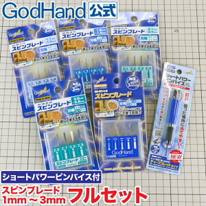 ゴッドハンド「スピンブレード 4本セット (刃幅3.2mm-4.5mm) ピンバイス3mm専用ブレードセット」のプラモデル用工具です。 丸モールドの救世主に太径シリーズ登場。 「回して使う彫刻刀」スピ...