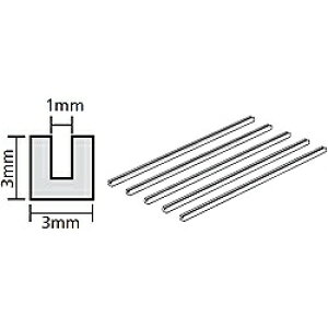 ■断面がコの字形をしたプラ材にきれいな透明仕様が加わります。■凹んだ部分の幅は約1mm、深さは約2mm。■ねじれや曲げに対して十分な強度を持ち、ジオラマの建築物や補強材、デザインワークなどに幅広く使えます。■3mm四方のコの字形