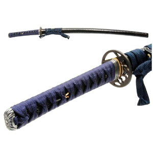サイズ:全長:106cm、刃渡:74cm、柄長:26cm・ 総重量:1,070g、鞘払い:820g 素材:刀身:超硬質軽量合金、柄下地:朴木、柄糸:正絹(紺)、鍔:鉄製、緑頭:銅製、目貫:合金製 仕様:刀文:井上真改写し刃文、鞘塗:三...