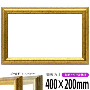 商品名 横長額縁 9580 400×200mm ゴールド/シルバー 前面UVカットアクリル仕様 色 フレームカラー:ゴールド/シルバー 商品詳細 額縁裏面内寸:400×200mm 縁幅:32mm 縁厚:21mm...