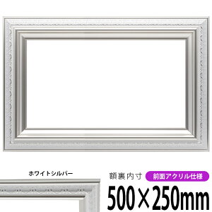 商品名 横長額縁 9586 500×250mm ホワイトシルバー 前面UVカットアクリル仕様 色 フレームカラー:ホワイトシルバー 商品詳細 額縁裏面内寸:500×250mm 縁幅:53mm 縁厚:25mm...