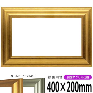 商品名 横長額縁 8120 400×200mm ゴールド/シルバー 前面UVカットアクリル仕様 色 フレームカラー:ゴールド/シルバー 商品詳細 額縁裏面内寸:400×200mm 縁幅:57mm 縁厚:26mm...