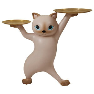 【ユニークで愛らしい猫デザイン】両手を上げて天板を支える猫の姿が、見る人を和ませる可愛らしさ。リビングやベッドサイドに遊び心と温かみを添える、芸術的なアイテムです。 【コンパクトで置き場所を選ばない】すっきりとしたサイ