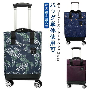 【バッグ単体使用可】キャリーケース・トートバッグ2way4つのキャスター付き、キャリケースのように荷物を引いて重さを気にせず持ち運ぶことが可能です。耐久性が高く、撥水効果のある生地を採用しているので急な雨でも安心。優れた耐