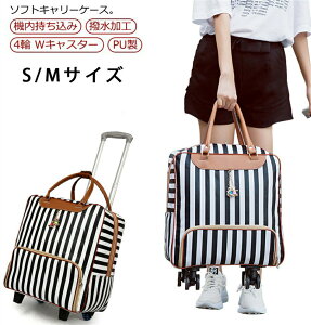 【機内持ち込み】【撥水加工】【4輪 Wキャスター】【PU製】ソフトキャリーケース。1〜3泊程度の出張や旅行に適したスーツケース3段階のプッシュ式ハンドルバーは錆びにくいアルミ製!360度回転自由自在のダブルキャスターを4輪装備!フロ
