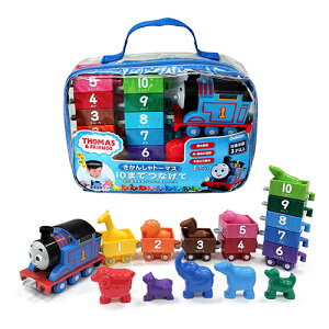 きかんしゃトーマスの知育おもちゃです。 遊びながら、数の概念・色、動物の認識・手指の巧緻性を身につけよう! 貨車を数字の順番につなげたり、各色の貨車に同じ色の動物をのせたり…。 色々な遊びを通して、数の概念などを芽生えさ