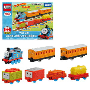 トーマストミカにつなげて遊べるキャラクターセットが登場♪ トーマス、アニー、クララベルの他、いたずら貨車や木材運搬車など たくさんの仲間や貨車がひとつになったセットです。 【セット内容】 ・トーマス×1 ・アニー×1 ・クララベ