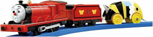 きかんしゃトーマスのおはなしに登場する「あかはなのジェームス」がプラレールに3両編成で登場! ■巣箱から逃げ出したみつばちに刺されてまっ赤に鼻がはれてしまったジェームス。ジェームスが走るとその後ろをみつばちが針を動かしな