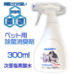 ペットおよびペットトイレなど関連製品用除菌消臭剤 微酸性次亜塩素酸水 成分:水・次亜塩素酸 pH:6.5(生成時) 有効塩素濃度:80PPM(出荷時)