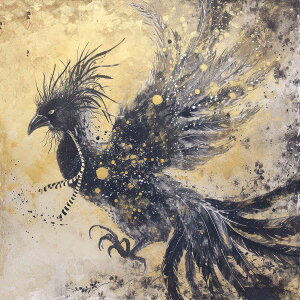 伝説の鳳凰、またはフェニックスを題材にしたこの豪華なポスターは、まさに運気を高めるデザインの代表作。正方形の構成は、バランスと調和を象徴し、掛け軸風のデザインが伝統的な浮世絵のタッチを現代のイ