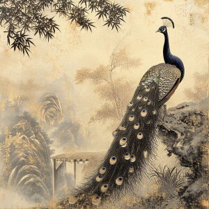 【このポスターについて】 優美な孔雀を描いたこのポスターは、インテリアに独特の魅力を与えるアイテムです。孔雀の羽の壮麗な色彩と細やかな模様は、部屋に豊かな文化的な雰囲気と洗練されたエレガンスをもたらします。広く開かれた