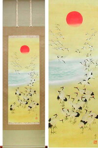お正月の掛軸として最もふさわしいのが「日の出」の掛軸です。 一家揃って新しい年の門出を迎えるにふさわしいとても縁起のよい図柄です。 希望に胸ふくらみ円満な家庭が生れまれるといわれています...
