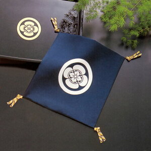 ご希望の紋を定紋一覧表よりお選び下さい。 ご自身の家紋がわからない場合、定紋の中にない場合は『寿』を ご選択下さい。 塩瀬という正絹の生地を染めて作っています。 サイズ20×22cm
