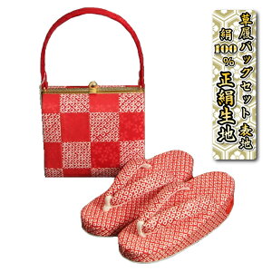 【送料無料】七五三や雛祭り、お正月に着られるお子様の御着物に必要な正絹生地の草履とバッグの2点セットです。 生地は四ツ巻総本絞りの手染め正絹生地になり一点づつ異なる絞りの生地が高級感抜群です。 色目は落ち着きのある赤色で