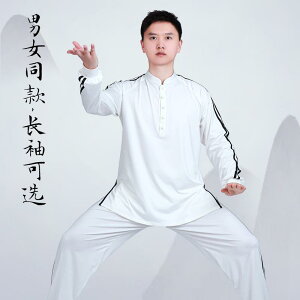 太極拳 服 レディース メンズ 夏 上下セット 練習 パフォーマンス カンフー 武術 通気性 吸汗 柔らかい 速乾 ポケット付 おしゃれ 大きいサイズ ライン 白