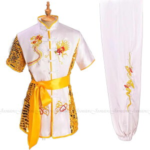 太極拳 服 レディース ヨガ 瞑想 運動 拳法 表演服 おしゃれ 動きやすい ドラゴン 龍 鳳凰 グラデーション 上下セット パンツ エレガント フォーマンス 競技 刺繍 男性 練習着 オレンジ 黄色...