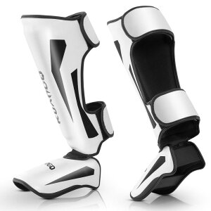 レッグガード ボクシング 空手 キックボクシング MMA テコンドー 武術格闘技 レッグプロテクター キック 練習用 レガース 膝 すね 保護 プロテクター男女兼用 (黒+白, M)ブランド色黒+白モ...