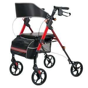4輪歩行器ウォーカー 軽量折りたたみ式パッド入りシート ロック可能なブレーキ 人間工学に基づいたハンドルとキャリーバッグ 大人高齢者向け移動補助 (レッド) (レッド) Full of stars