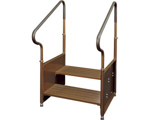 【商品説明】 ●1段、2段はこれ1台で対応。手すりと踏板の調節は自由自在。踏板は1.5cm単位で調節できます。組立簡単。 ●2枚の踏板を同じ高さで固定すればワイドな奥行の1段タイプとしても。 ●手すりと踏台が一体で、玄関や縁側の昇降が