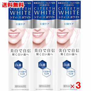 商品名シティースホワイト 口臭ケア 内容量110g 商品説明(製品の特徴)製薬会社のオーラルケア研究から生まれた美白高機能歯みがきシリーズ美白で自信 輝く白い歯へ(1)トリプルステインオフ処方でステイン(着色汚れ)を浮かせて落と