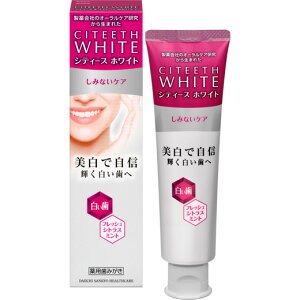 第一三共ヘルスケア シティースホワイト しみないケア(110g)【医薬部外品】■ 商品説明製薬会社のオーラルケア研究から生まれた美白高機能歯みがきシリーズ。 (1)トリプルステインオフ処方でステイン(着色汚れ)を浮かせて落と