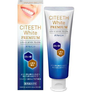 『【医薬部外品】シティース ホワイト プレミアム ダブルミント 70g』デンタルケア 歯磨き粉 薬用 商品紹介 トリプルステインオフ成分※でステイン(着色汚れ)を浮かせて落とします。 シャイニー成分(光沢剤)α-TCP配合...