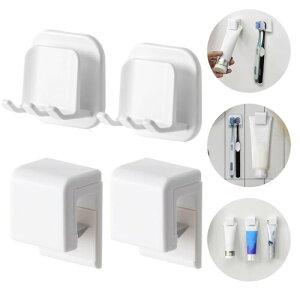 YOOTASIO 壁掛け 歯磨き粉クリップ 歯ブラシホルダー 洗顔料クリップ 歯ブラシスタンド 歯ブラシ・歯磨き粉・洗顔料・シェーバー・プラグ・歯磨きコップ・タオルの収納に最適です浴室収納 (4個入*白)...