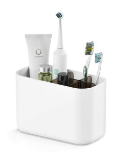 大容量でしっかり収納?サイズは17.1x8.9x11.2cm、電動歯ブラシ、手動歯ブラシ、歯磨き粉、口腔ケアツールなどをまとめて収納可能!散らかりがちな洗面台をすっきり整理できます。 仕切りでスマートに整頓...