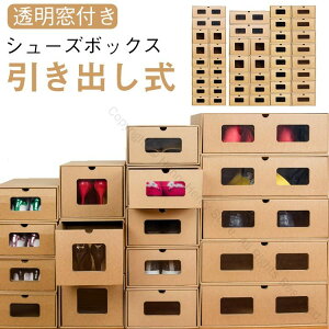 【シューズボックス】【引き出し式】【透明窓付き】窓付きで中身がわかりやすいシューズボックス。ダンボール箱でできた便利グッズはプラスチックのボックスと違って湿気がこもりにくいのが嬉しいポイントです。取っ手になる穴があい