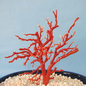 商品説明珊瑚の種類高知沖産血赤珊瑚 サイズ大きさ:約W16×H11センチ 根元付近の直径:約10ミリ 重さ:8.5匁 (約31グラム) *ミッド珊瑚チップ:200匁(約750g) *鉢(陶器)の大きさ:直径約12cm、高さ7cm特徴土...