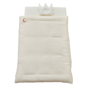 生まれたての赤ちゃんのためのエレガントなお布団セット ウォッシャブルでいつでも清潔! まくら、まくらカバー、敷き布団、敷き布団カバー、掛け布団、掛け布団カバーの6点セットです。 ・全て丸洗いOK ・日本製 中綿布団 ・