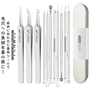 セット内容:極細角栓取りピンセット 3 種(直型 / 斜め型 / 曲がり型)、ニキビ針 5 本、専用金属収納ケース 1 個。 【ドイツ技...
