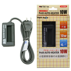 小型飼育容器の水温調節に!カミハタ プチオートヒーター 10W対象淡水・海水両用特長●4リットルの水量まで対応できる、小型水槽での使用に適したオートヒーターです。●薄型で小さく、付属のキスゴムで簡単に取り付けることができま