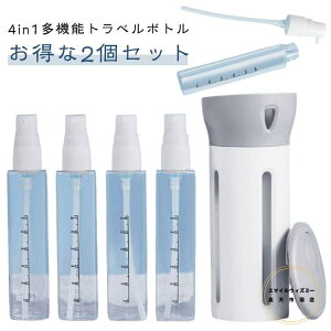 【お得な2個セット】 【4in1多機能トラベルボトル】 旅行や出張、アウトドアに便利な4in1多機能トラベルボトルです。 シャンプー、コンディショナー、化粧水、スキンケア用品などを1本にコンパクト収納。 回転式デザインで、使いたいボト