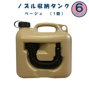 商品説明 商品内容 ポリタンク6L(ノズル付き) ベージュ ・自動車部品製造工場で製造した安心の日本製。 ・アウトドア・防災時等さまざまなシーンにお使いいただけます。 ・注ぎやすい収納式ノズル付き。 ・キャップ紛失防止のための