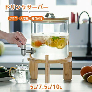 木製配件・高級感と安定性:高品質透明ガラスで飲料の魅力を引き立て、「木製」配件(ベース / ハンドル)で容器を安定固定。木の質感でインテリアに調和し、ガラスの保護とデザイン性を両立させる。 蛇口付き・密閉タ...