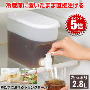 冷蔵庫からそのまま注げる!スマートで快適な新習慣「冷蔵庫に据え置いたまま使えるドリンクサーバー(2.8L)」毎日何度も冷蔵庫を開けて、重たい冷水筒を取り出して注いで戻して…そんなちょっとした「面倒」、感じていませんか?特に