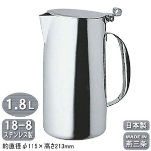 ◆【日本製・燕三条製】 18-8ステンレス製のK型ウォーターポット。 ◆シンプルなデザインの使いやすいウォーターポットです。 ◆業務用として多くのレストラン等の飲食店で愛用されています。 ◆耐久性、耐腐食性に優れた18-8ステンレスを