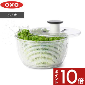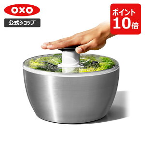 片手でノブを押すだけで中のカゴが回転し、簡単だけどしっかり水切りができて野菜の美味しさが楽しめるオクソーのサラダスピナー。食材の水洗いから水切りまでこれ1つで行える便利な調理ツールです。