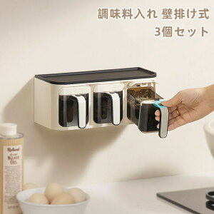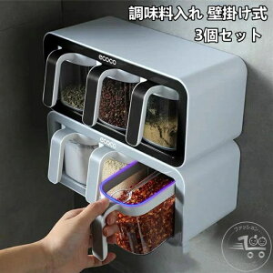 調味料ポット 調味料入れ スプーン付き 3個セット 壁掛け式 調味料ケース 密閉容器 保存容器 防水防湿気 キッチン 調理用具 穴あけ不要 取り付け簡単 送料無料