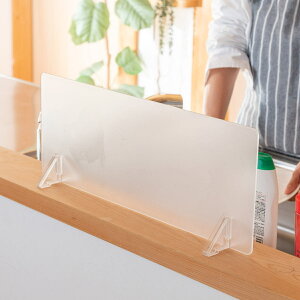 アクリル製 水はね防止スタンド 幅60cm 日本製 【商品概要】 ■バリエーション クリア(透明) マット(半透明) ■素材 本体:アクリル、脚:アクリル ■生産国 日本製 ■サイズ 本体:(約)250mm×600mm×5mm 脚:(...
