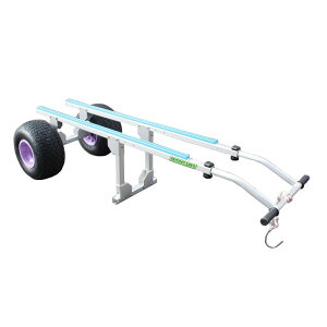従来品に比べ高強度の太く新しいオリジナル44角材を使用してます。 従来フレームに比べ1.4倍強度UP、各ブラケット部分もM8ボルト&ナットでガタなく固定。 艇長に合わせ バランス良くフレームを長く、また4サイクルの重量に耐える車軸部分