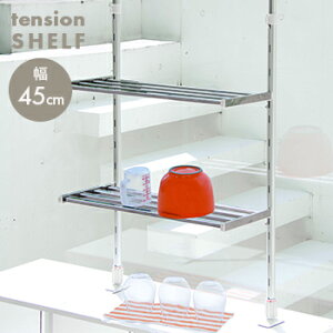 ワンタッチの「つっぱり支柱」で取り付けも簡単! 壁に傷を付けずに取り付けできる便利なつっぱり棚です。支柱の高さを70〜105cmまで調節できるロングサイズ。棚幅は45cmとコンパクトなので狭い場所でもご使用いただけます。