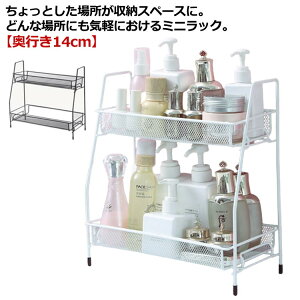 卓上 ミニ ラック 棚 2段 キッチンラック 防水 水切り バス 浴室 洗面所 水回り 化粧品 コスメ 収納棚 メッシュ スチール 収納ラック