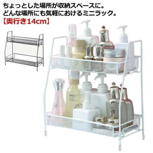 ちょっとした場所が収納スペースに。どんな場所にも気軽におけるミニラック。 【奥行き14cm】オープンラックだから、欲しいものがすぐ手にとれます。バスケットはメッシュなので排水性があり、通気性がよい、カビが生えにくいです。実