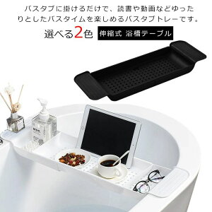 バスタブに掛けるだけで、読書や動画などゆったりとしたバスタイムを楽しめるバスタブトレーです。バスタブの幅に合わせて55.6〜78.8cmまでスライド調節して設置できます。環境に良いPP樹脂の素材で、金属製や木製よりもさびが付きにくく