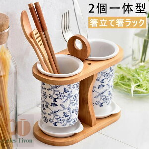 素材:陶器、木製 木製のスタンドに二つの箸置きがセットになっています。キッチンやダイニングテーブルの収納もでき、底に穴が空いているので、水はけが良い ■PCモニタによる微妙な色違いはご了承下さい。箸立て箸ラック...