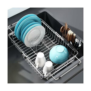 伸縮水切りラック シンク上 ステンレス 伸縮式 食器かご ショッキ ミズキリシンク内 スライド 洗い物ラック 流し台 スリム コンパクト 水切りかご サ【商品仕様大容量収納】伸縮式水切りラック / 材質: