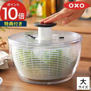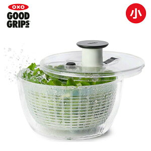 サラダスピナーのパイオニア「OXO オクソー クリアサラダスピナー 」。片手でノブを軽くプッシュするだけで、らくに水切りができるサラダスピナー。