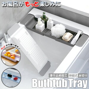 バスタブトレー 水切りラック 伸縮式 トレー お風呂 テーブル バスラック 滑り止め ズレ防止 KAN000423 (C.ホワイト)